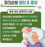 이 외에도 미토콘드리아 기능 장애, 염증 반응, 산화 스트레스 등이 파킨슨병과 연관될 수 있다고 추정되고 있습니다. 파킨슨병은 복잡한 다인자 질환으로, 여러 요인이 상호 작용하여 발병에 이르는 것으로 생각됩니다.