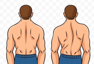 - 등이 한쪽으로 더 튀어나와 보임