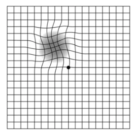 - 중앙을 응시하면서 격자무늬가 왜곡되거나 흐리게 보이는지 확인합니다.