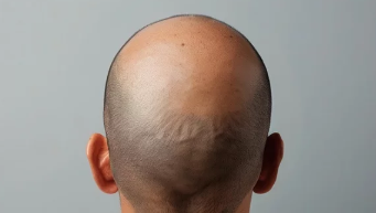 - 탈모 부위의 부드러운 피부: 탈모된 부위는 염증 없이 매끄러운 피부로 보입니다.