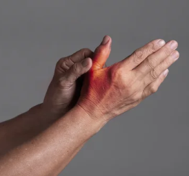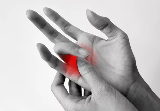 - 손목, 손가락 끝, 특히 엄지, 집게, 중지에 저림과 통증