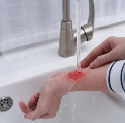 - 화상 부위를 흐르는 찬물에 최소 10~20분간 식힘
