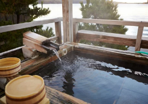 - 편안한 자세로 앉아 발을 담급니다.