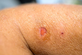 그 전단계는 피부에 생긴 회색빛의 작은 결절이나 상처가 아물지 않는 형태로 나타납니다.