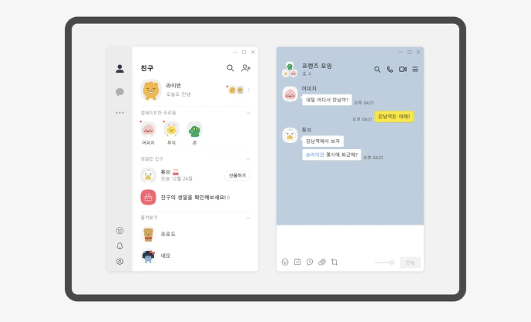 1. 카카오톡 PC버전을 이용하면, 하나의 계정으로 여러 기기에서 카카오톡을 이용할 수 있습니다.