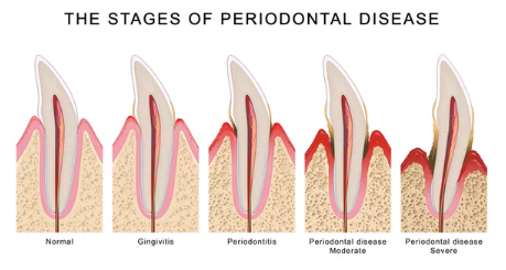 - 치주염 말기: 치조골 손실이 심해져 치아를 지탱할 수 없게 되고, 결국 치아가 빠지게 됩니다.