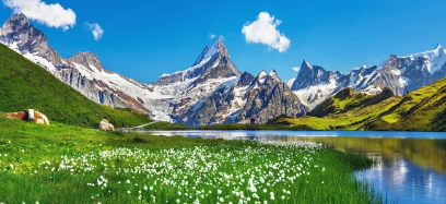 스위스의 봄은 알프스의 눈이 녹고 꽃이 피어나는 아름다운 계절입니다. 따뜻한 햇살 아래 푸른 초원과 알록달록한 꽃들이 어우러져 그림 같은 풍경을 선사합니다. 봄에는 하이킹, 자전거 타기 등 야외 활동을 즐기기 좋으며, 다양한 봄 축제도 열립니다.